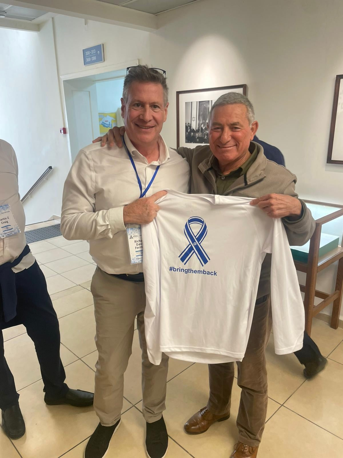 In order to try to find a unifying symbol for the entire world to embrace the release of the hostages, we created the Blue and White Ribbon. More symbolic than the yellow ribbon, the Blue & White Ribbon is a global statement to get all the hostages released.